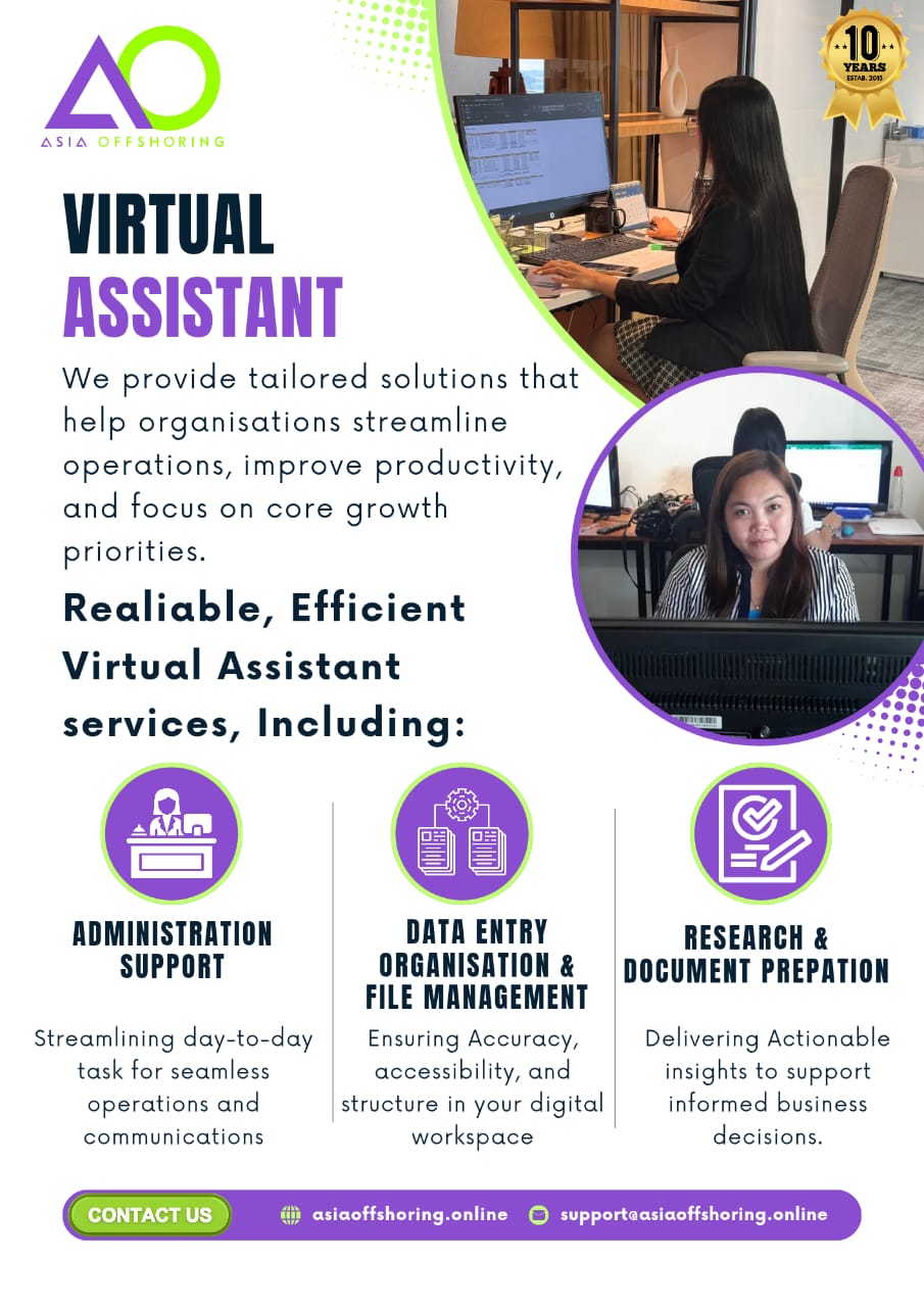 Asia Offshoring offers professional Virtual Assistant services to help organisations streamline daily operations and improve productivity.